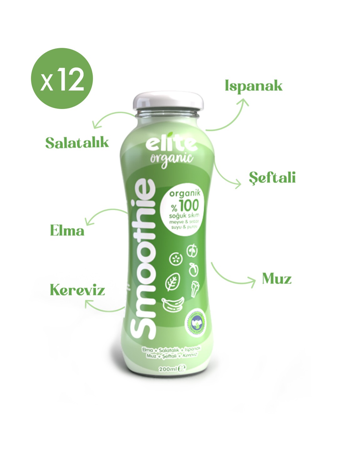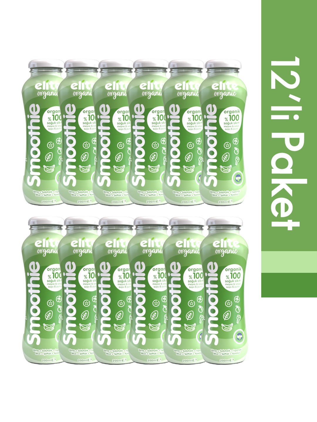 12'li Organik %100 Smoothie Yeşil 200 Ml