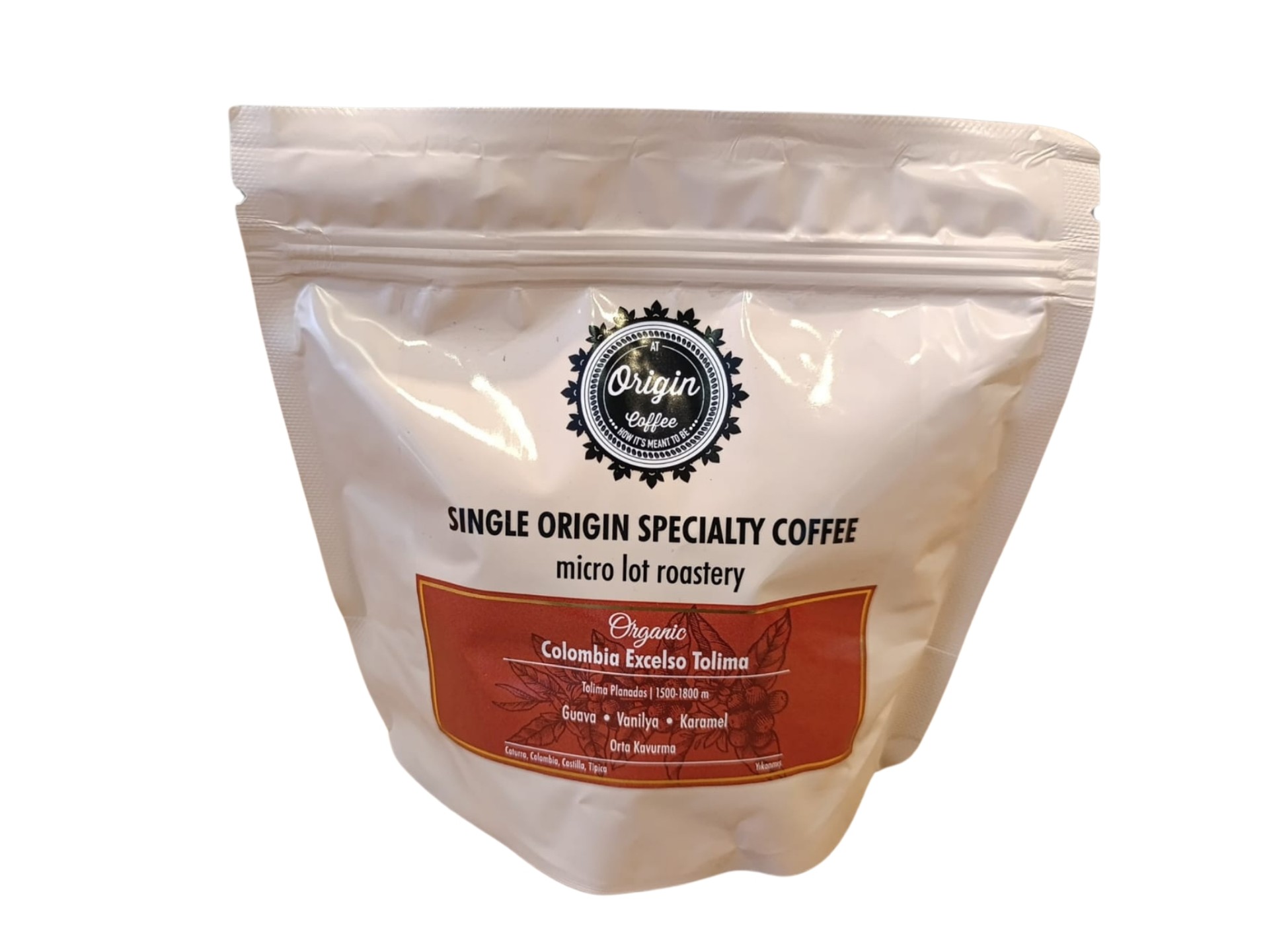 At Origin Organik Kahve Colombia Excelso Tolima Vanilya, Karamel, Guava, Canlı Asidite Varyete Caturra, Colombia, Castilla ve Tipica Konum: Tolima, Planadas Bölgesi Rakım 1500 – 1800 m arası İşleme: Yıkanmış