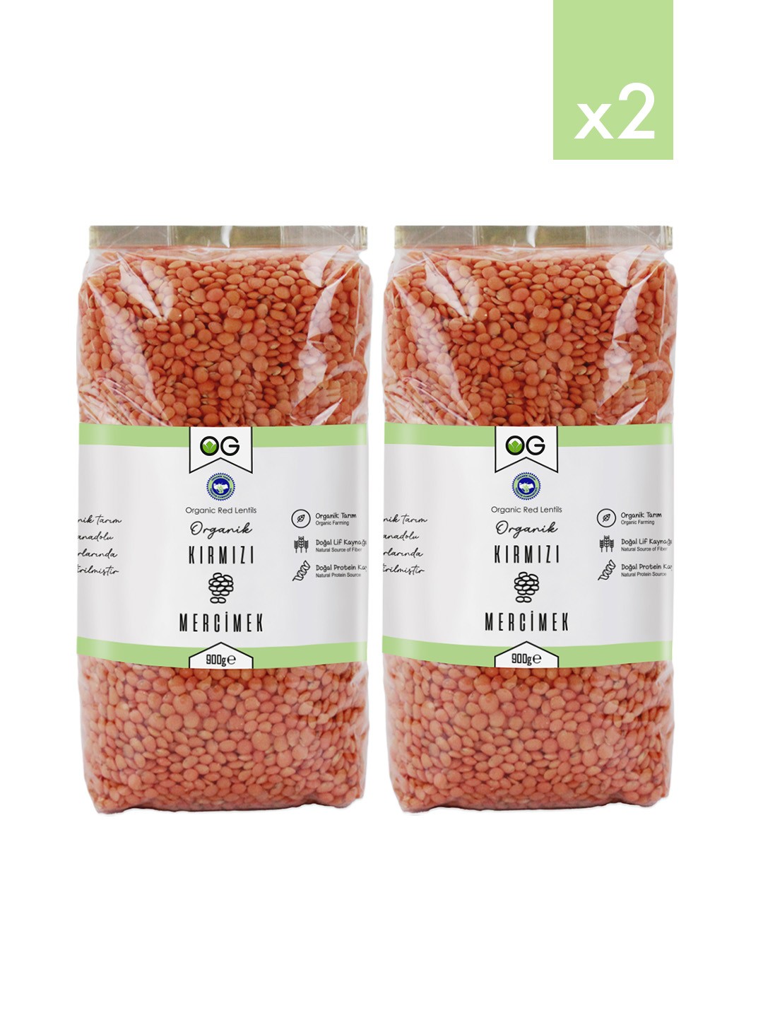 Organik kırmızı mercimek (900 g x 2)