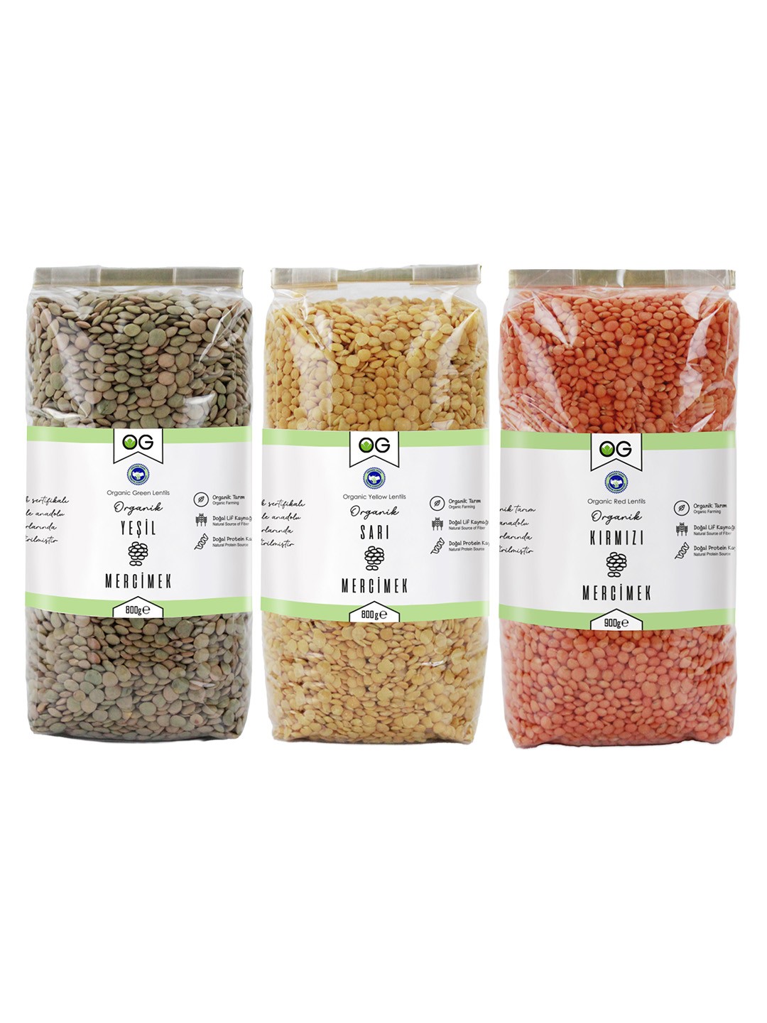 Organik Kırmızı Mercimek (900 g), Organik Sarı Mercimek (800 g), Organik Yeşil Mercimek (800 g)