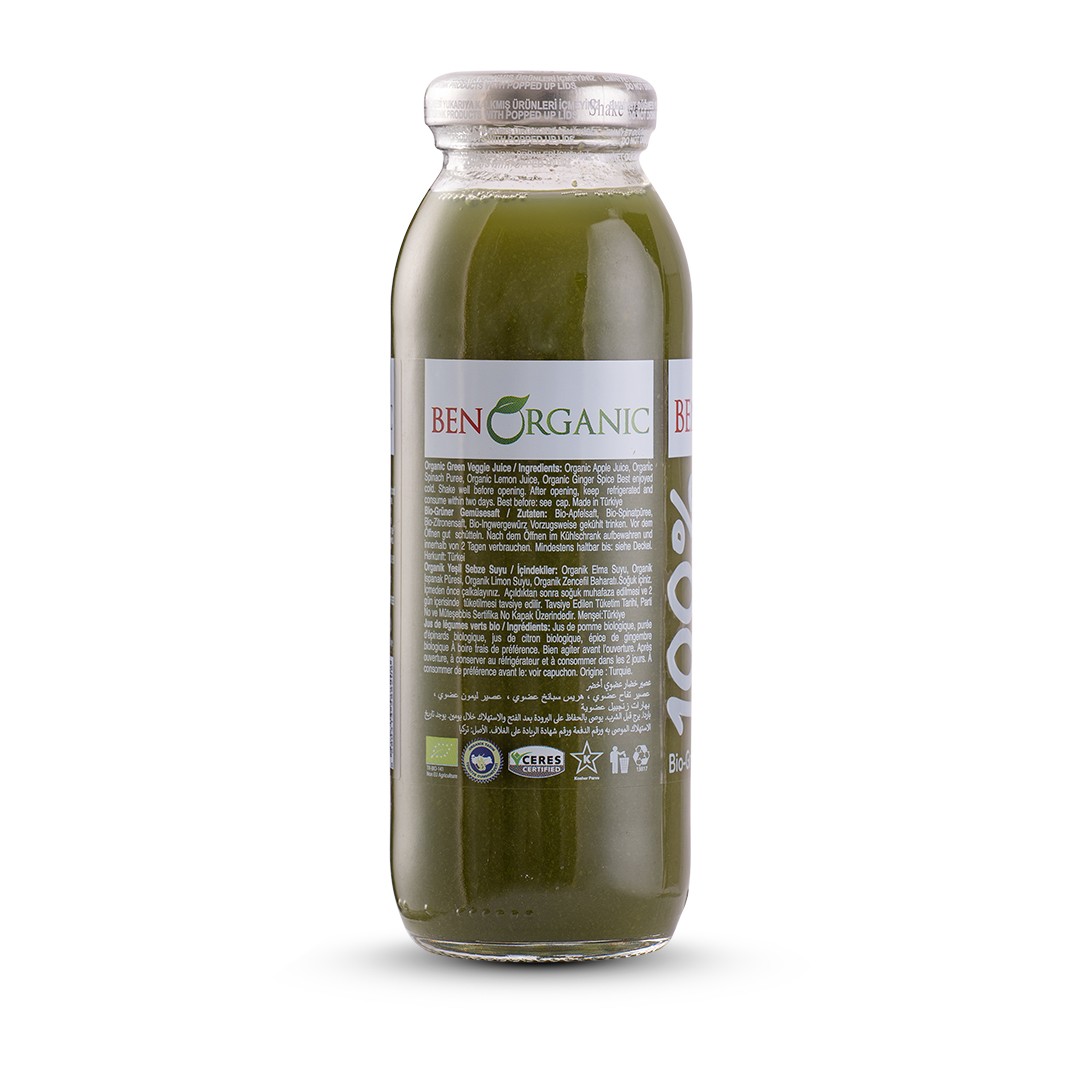 İçindekiler: Su, Organik Elma Suyu Konsantresi, Organik Ispanak Püresi, Organik Limon suyu Konsantresi, Organik Zencefil Baharatı